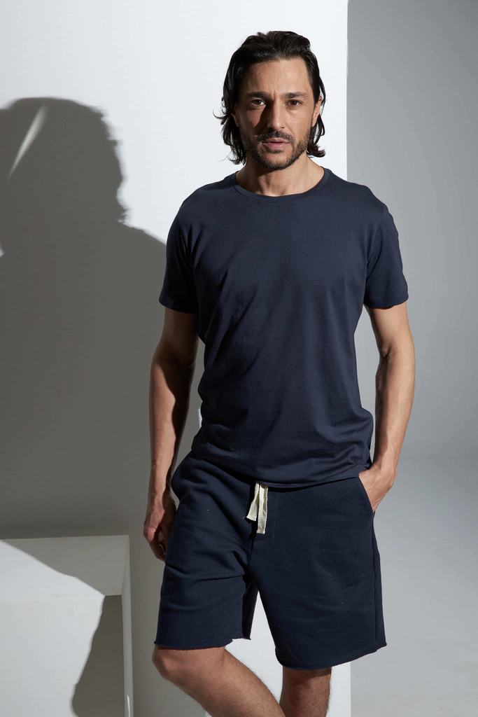 Bermuda em moletinho com modelagem tradicional e acabamentos à fio.