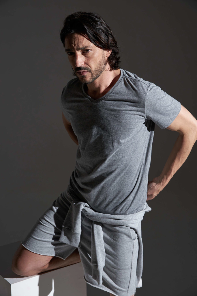 Bermuda em moletinho com modelagem tradicional e acabamentos à fio.
