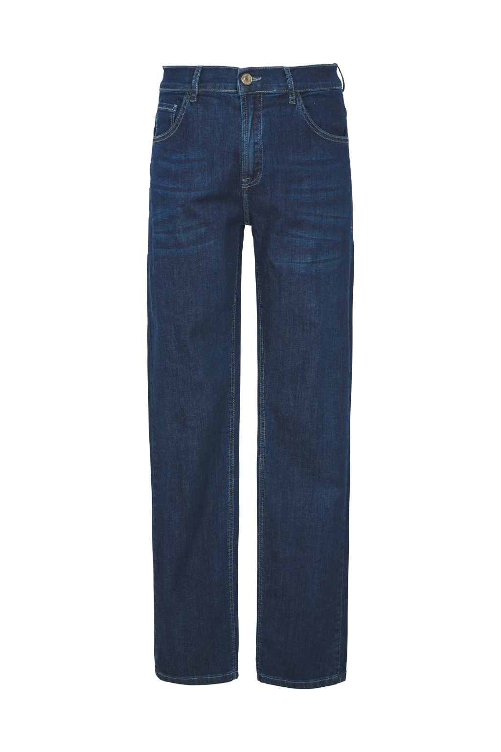 Calça escura masculina com elastano, modelagem slim e botões envelhecidos