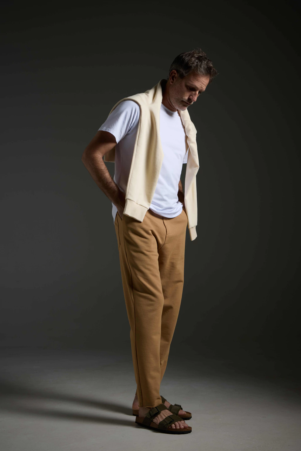 Calça em moletom atoalhado por dentro, possui um bolso atrás, e acabamento a fio na barra.