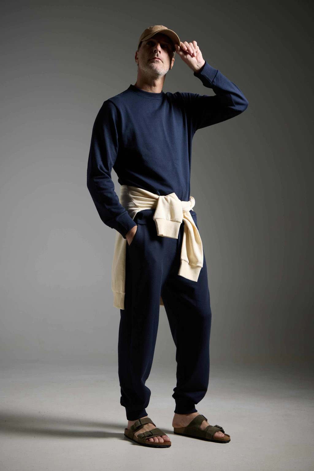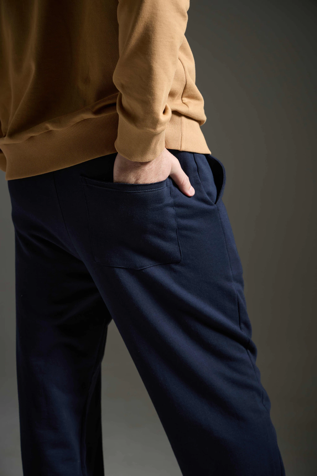 Calça em moletinho atoalhado por dentro e acabamento em punho de ribana na barra.