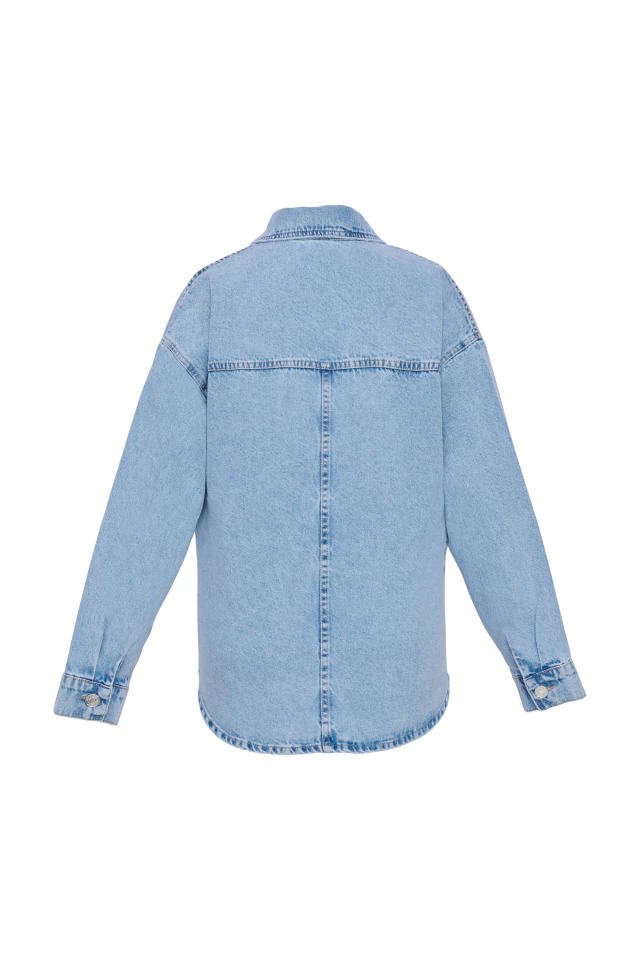 Camisa em jeans 100% algodão com modelagem oversized e comprimento maior atrás.