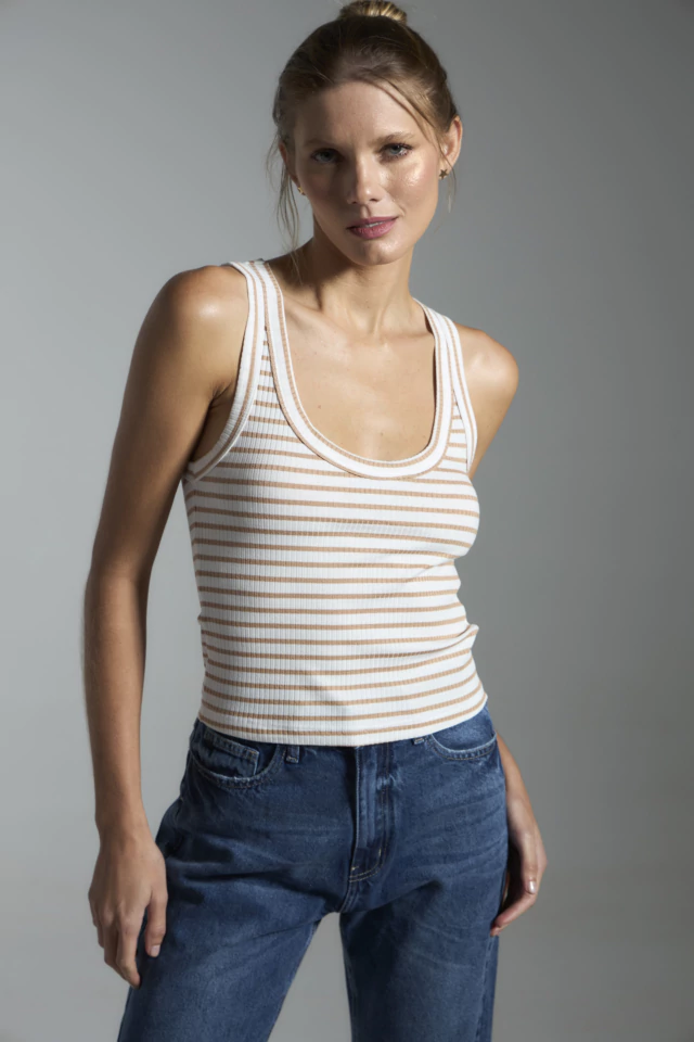 Camiseta Canelada Listras - Caramelo