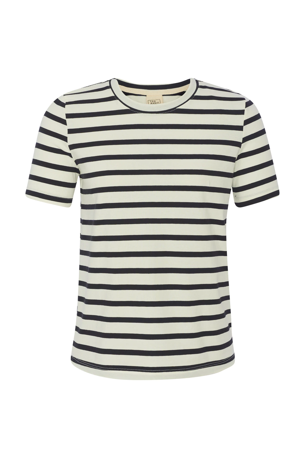 Camiseta com gola redonda, manga curta em algodão com listra.