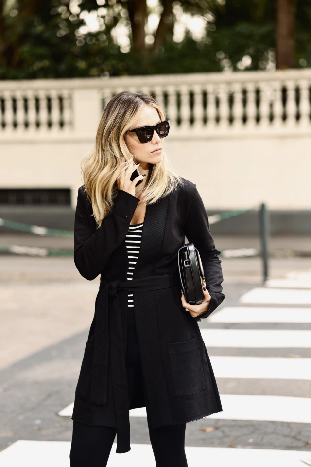 Maxi Cardigan Canelado - Preto