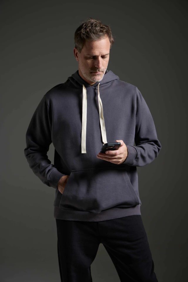 Moletom com Capuz Felpado - Cinza Chumbo